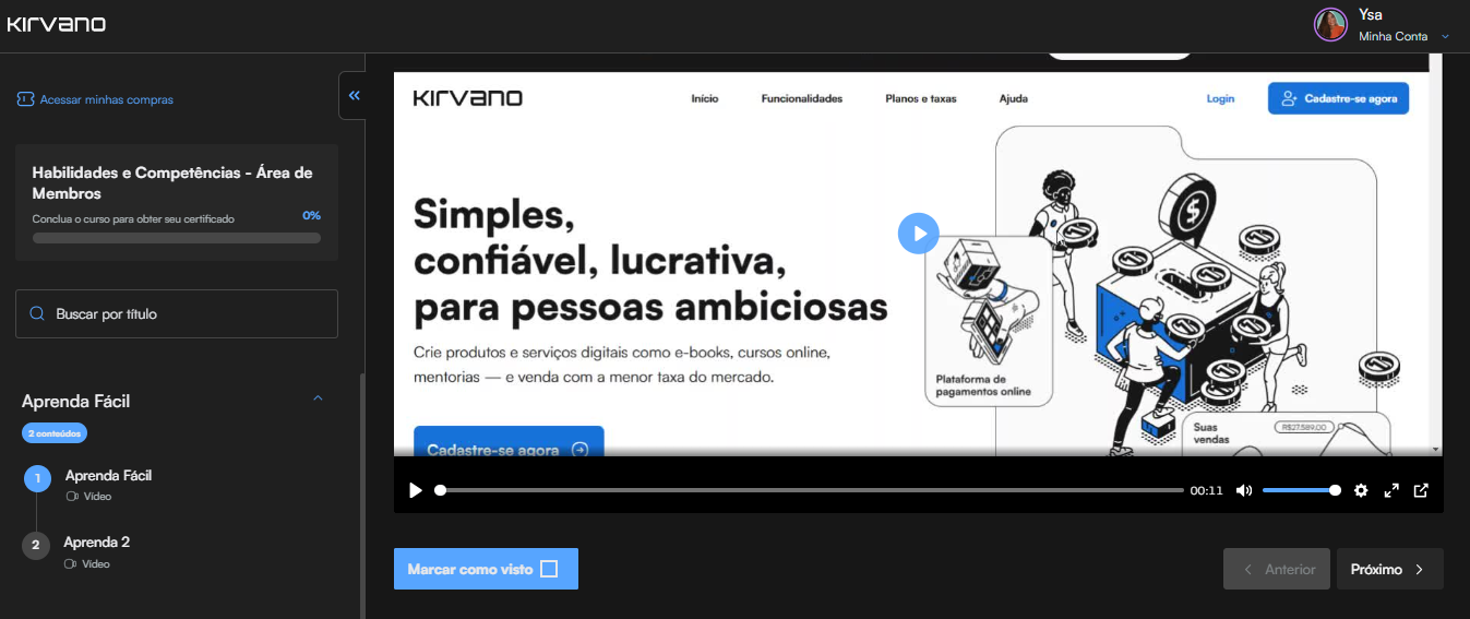 Após clicar em "Acessar", você será direcionado à área de membros, onde poderá visualizar o curso e começar seus estudos.