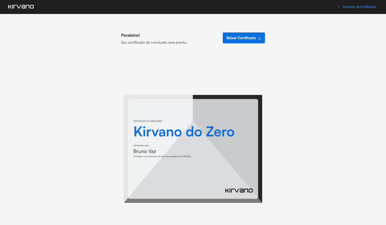 Ao finalizar seu curso alguns possuem certificado de finalização, e para que a emissão seja feita, ao final aparecerá a opção de "Ver Certificado" após finalizar o curso. Onde a plataforma apresenta o certificado e da a opção para que seja feito o Download.