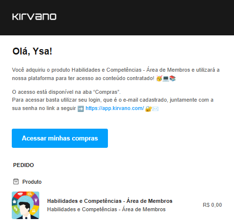 Caso você não consiga acessar o curso pelo e-mail recebido, você pode acessar diretamente pelo link: https://app.kirvano.com/