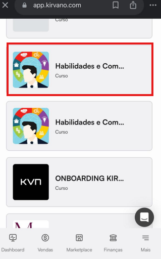 No modo mobile (celular), a visualização do curso é diferente. Para acessá-lo, siga este caminho: Acesse o link: https://app.kirvano.com/ e faça o login.