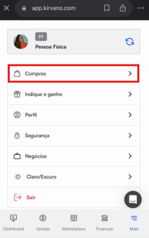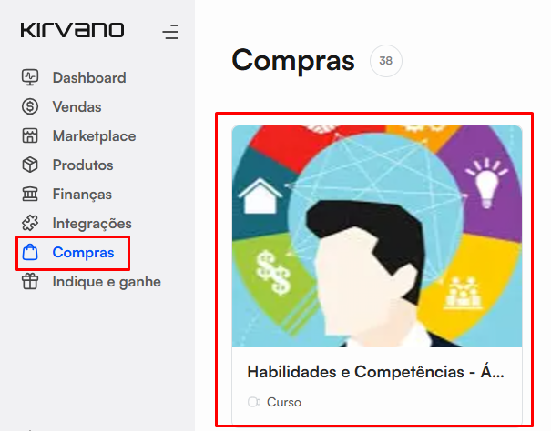 Selecione a opção "Compras" e, em seguida, escolha o curso que você adquiriu.