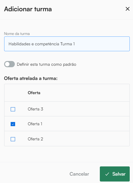 Insira o nome da Turma, e selecione a oferta que fara parte dela.