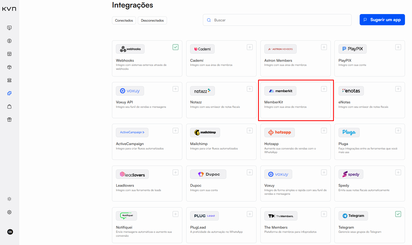 Para realizar a integração, basta acessar a extensão Memberkit > Integrar produto