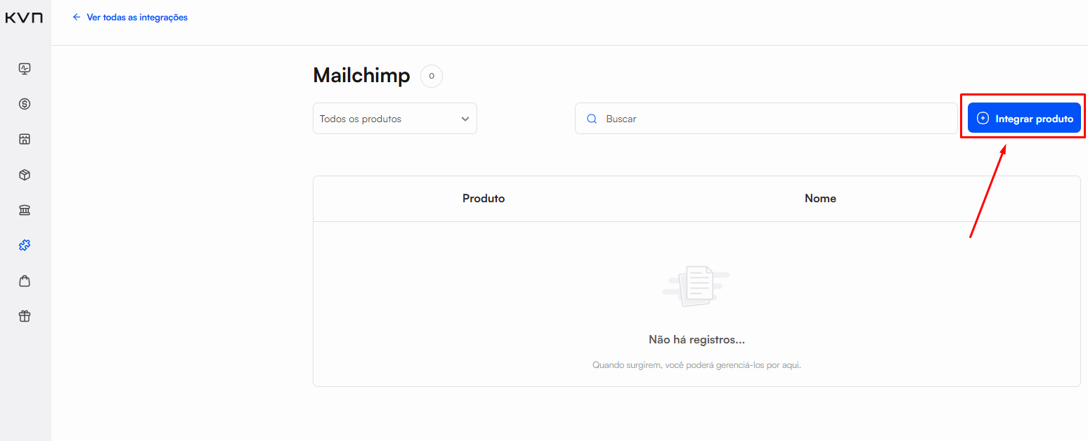Para realizar a integração, basta acessar a extensão Mailchimp> Integrar produto
