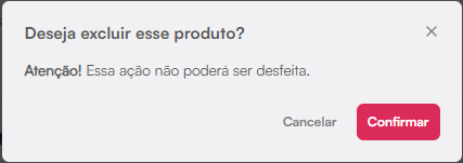 Após excluir o produto não será possível recuperá-lo.