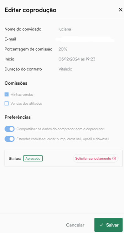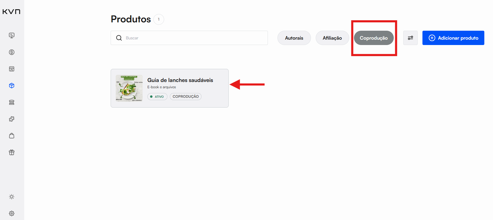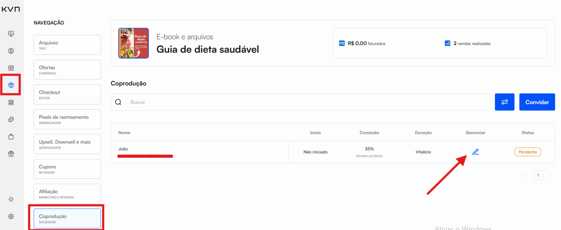 Clique no menu Coprodução e depois no ícone do lápis para Gerenciar