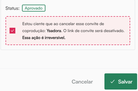 Marque a caixa de seleção para confirmar o cancelamento e clique em Salvar