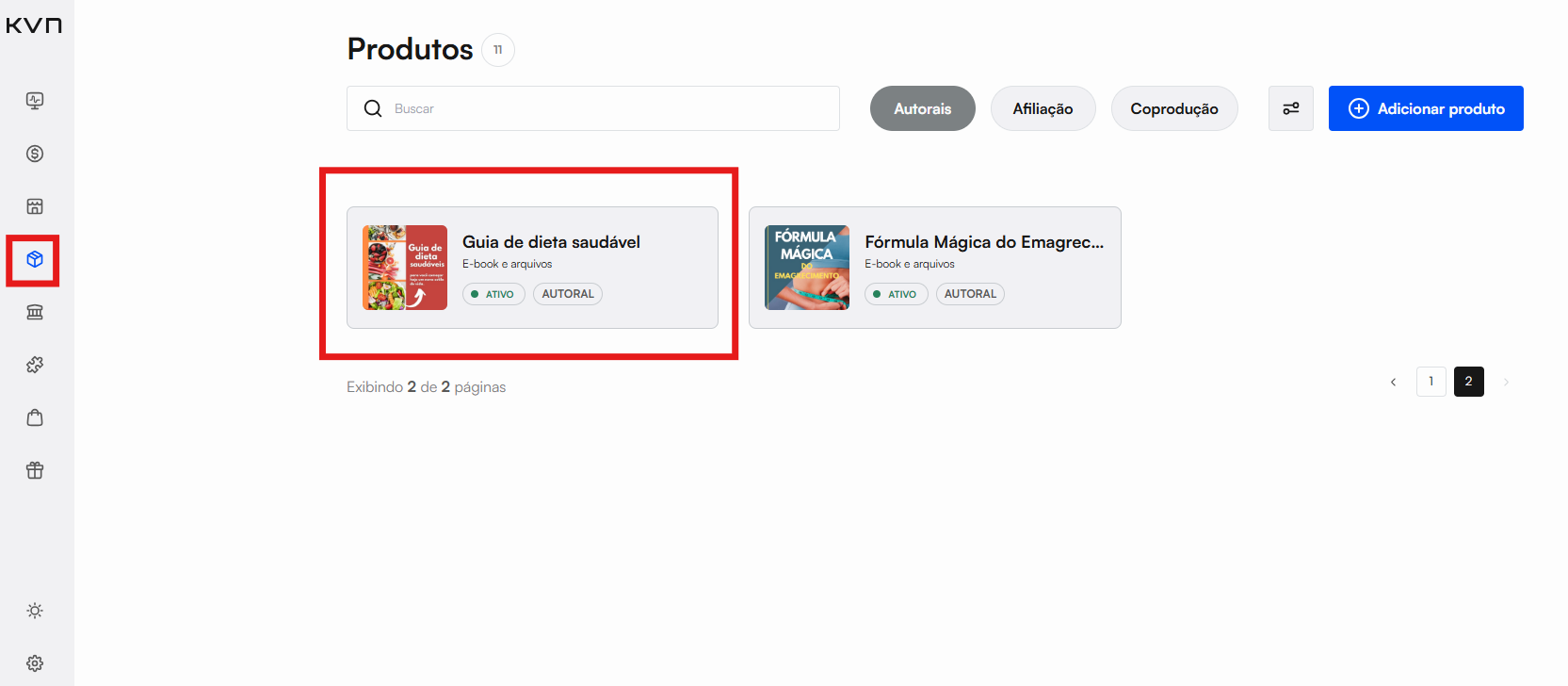 Clique em Produtos e selecione o produto que deseja cancelar o contrato