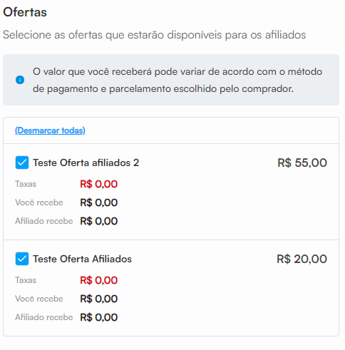 Quando você disponibiliza seu produto para afiliação, todas as deduções de taxas são de responsabilidade do infoprodutor, incluindo taxas de transações, reembolsos e chargebacks. O afiliado, por sua vez, recebe integralmente o valor estipulado como comissão.