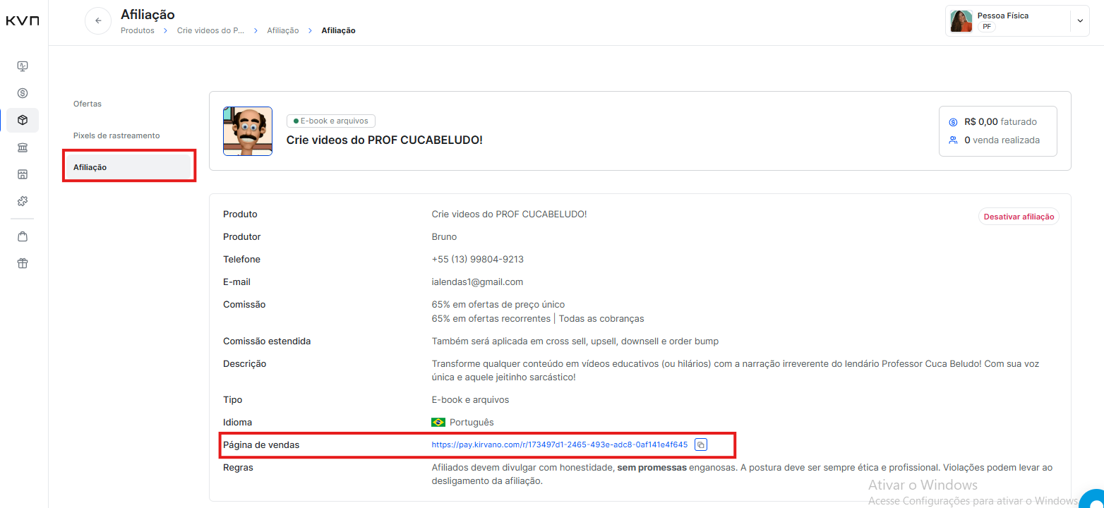 No menu Afiliação você encontra o link da páginas de vendas oficial do produto.