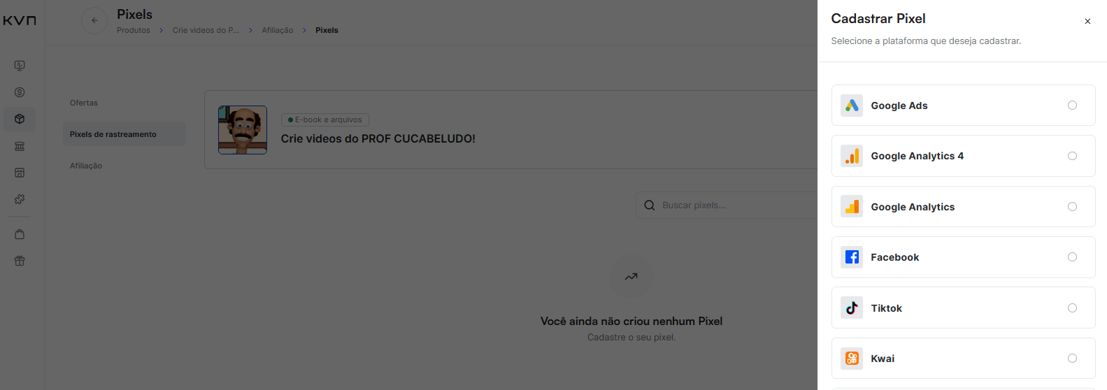 Para cadastrar Pixel de rastreamento, sigas os passos do tutorial "Como configurar os pixel de conversão "