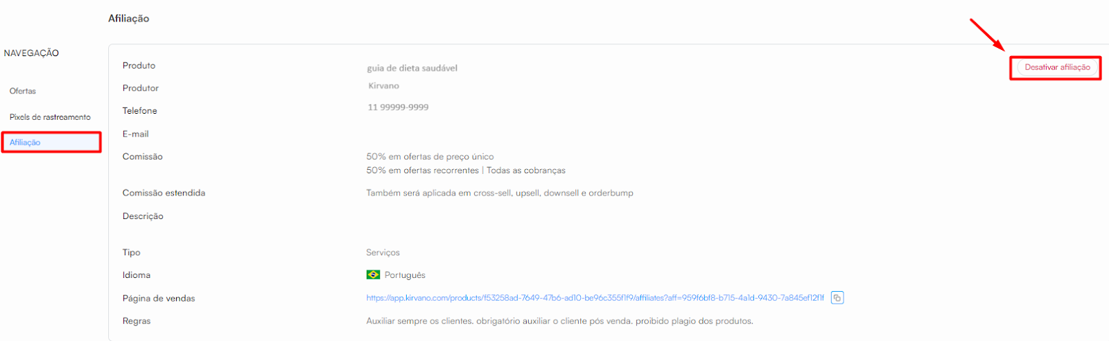Pronto, afiliação do produto foi desativada.