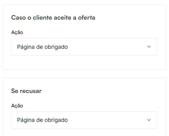 Se o cliente recusar : O processo é o mesmo. Você pode direcioná-lo para uma nova oferta inserindo o link da mesma ou para a página de obrigado.