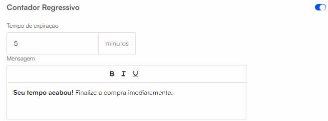 Defina o tempo e a mensagem que será mostrada depois que o contador expirar:
