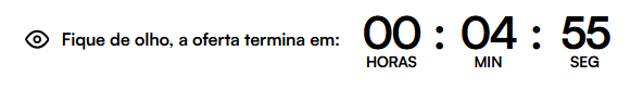 Contador regressivo cria aquele senso de urgência, fazendo os clientes agirem rápido para aproveitar a oferta antes que acabe. Isso ajuda a aumenta as chances de conversão.