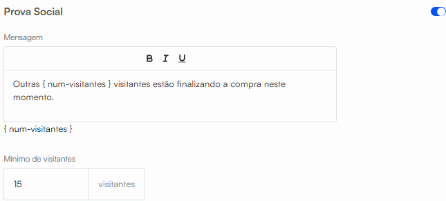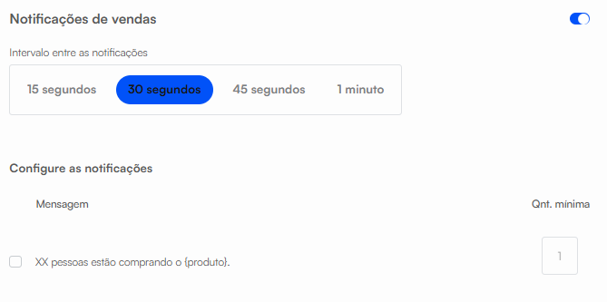 As "Notificações de vendas" e "Prova Social" só serão exibidas se a quantidade definida na configuração realmente estiver acontecendo naquele momento.