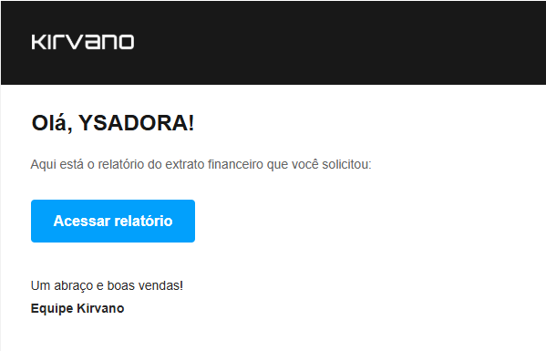 O recebimento do arquivo será no e-mail de cadastro do sistema Kirvano. O mesmo que você utiliza para se logar ao sistema. Caso não localize na sua caixa de entrada, verifique na caixa de Spam.